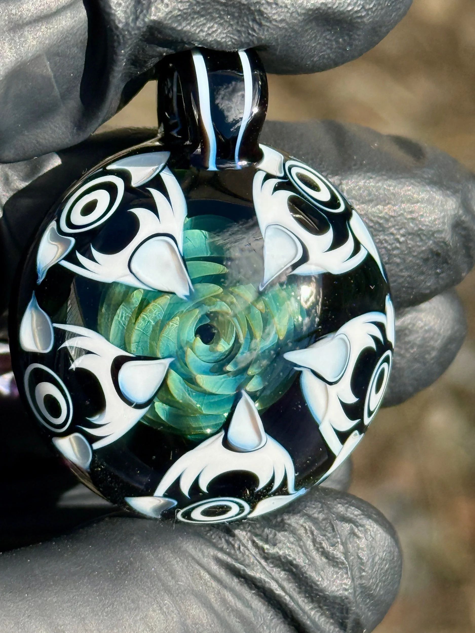 Shop › Hurricane Talisman #2 Image 1 of 3 Image 2 of 3 Image 3 of 3 Hurricane Talisman #2 $200.00 Dot stacks over fume implosion make for a unique pendant Measures 34mm Purchase Added! Dot stacks over fume implosion make for a unique pendant Measures 34mm