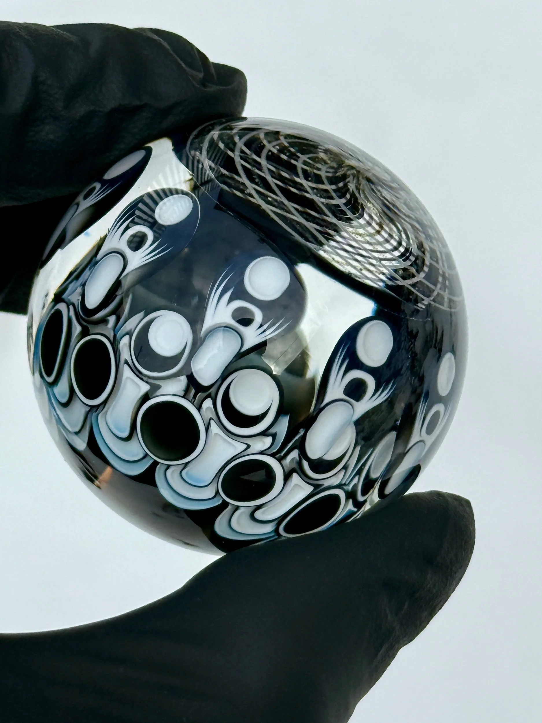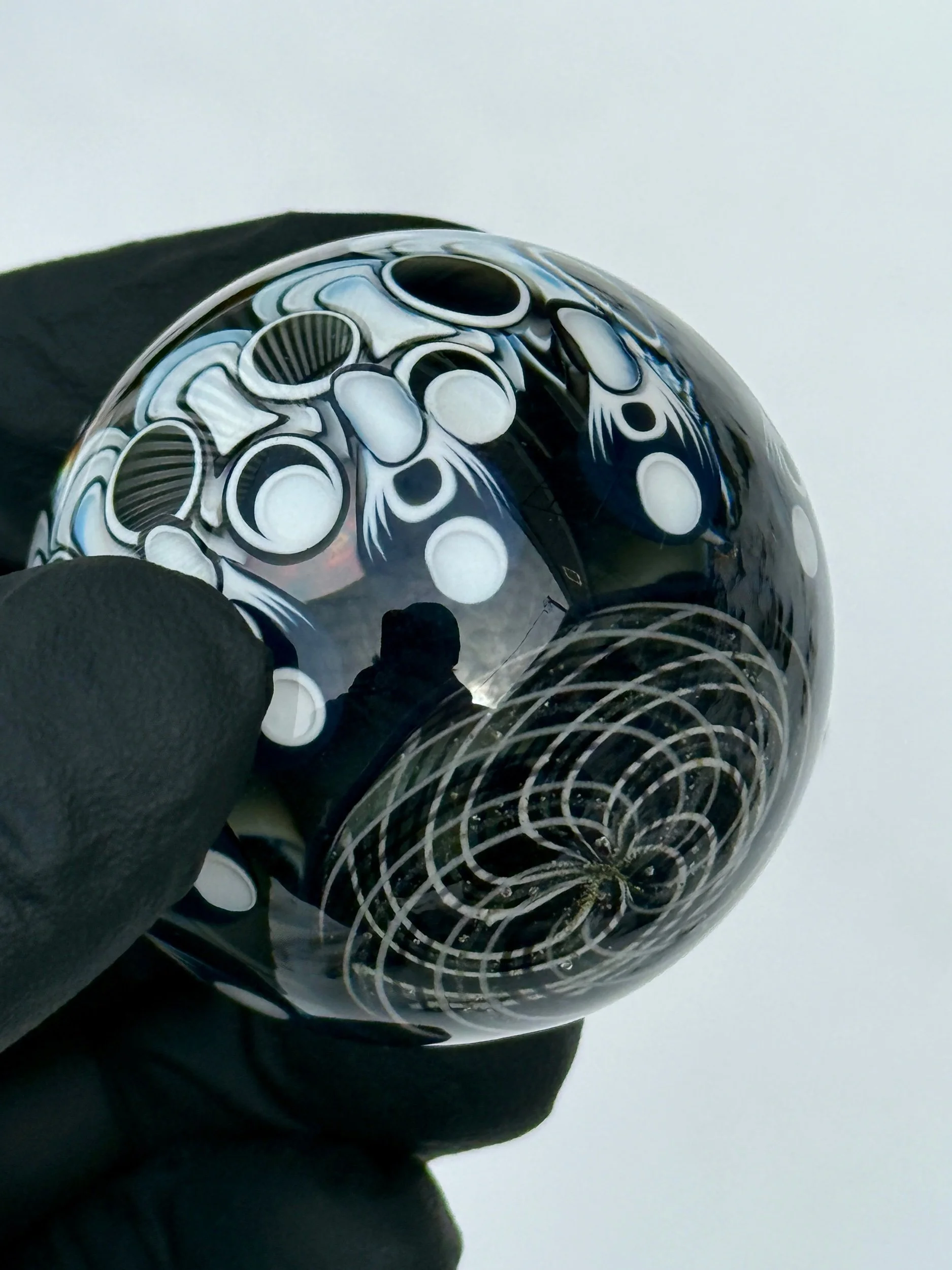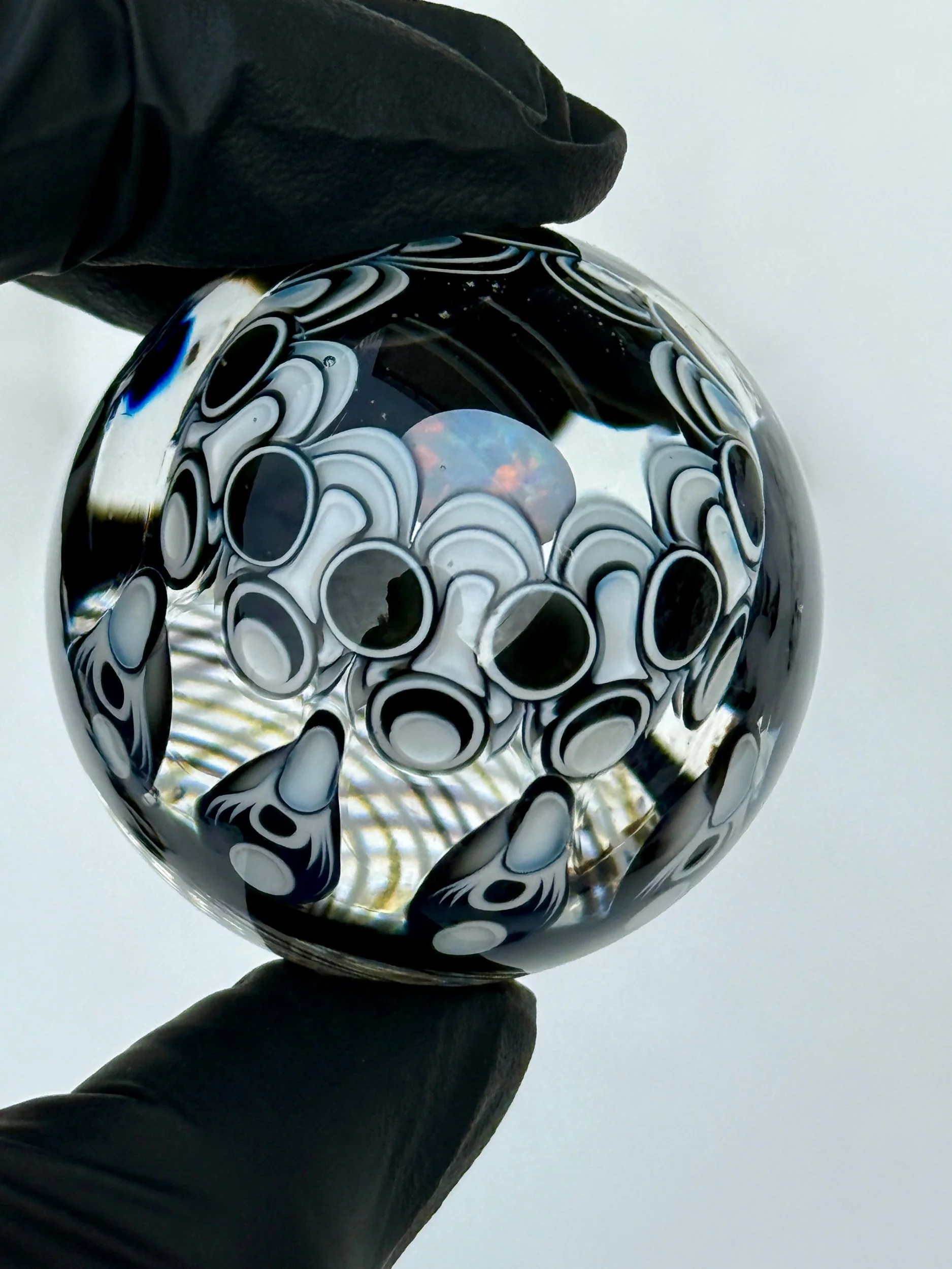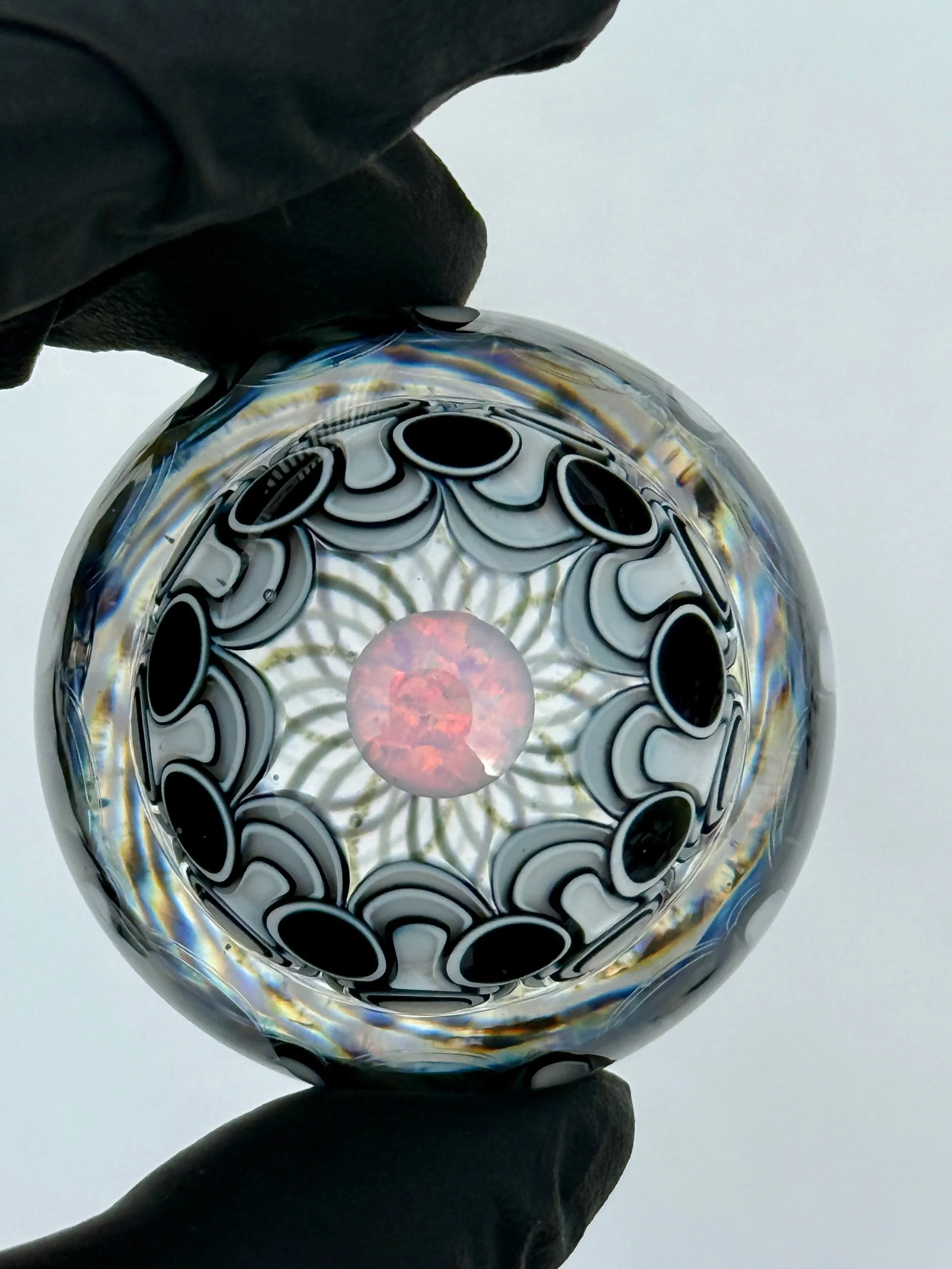 Shop › B&W Roller #3 Image 1 of 4 Image 2 of 4 Image 3 of 4 Image 4 of 4 B&W Roller #3 $450.00 Two layers of dot work patterns and a third retticello layer surround a large opal coinMeasures 45mm Purchase Added! Two layers of dot work patterns and a third retticello layer surround a large opal coinMeasures 45mm